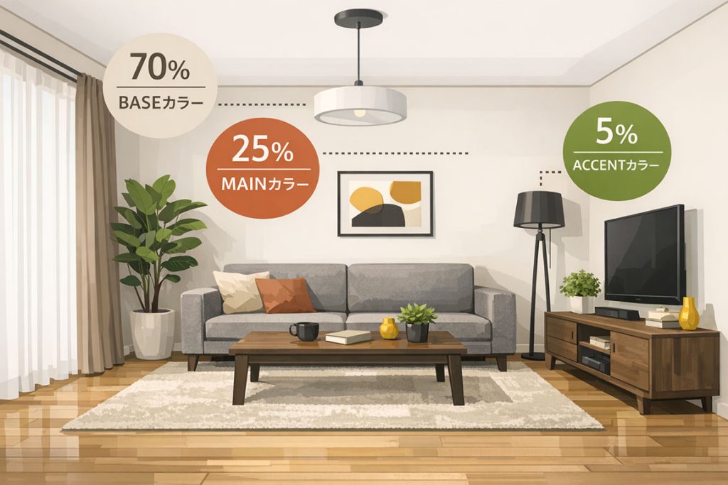 基本は以下の黄金比(ベース・メイン・アクセント)を意識しましょう。