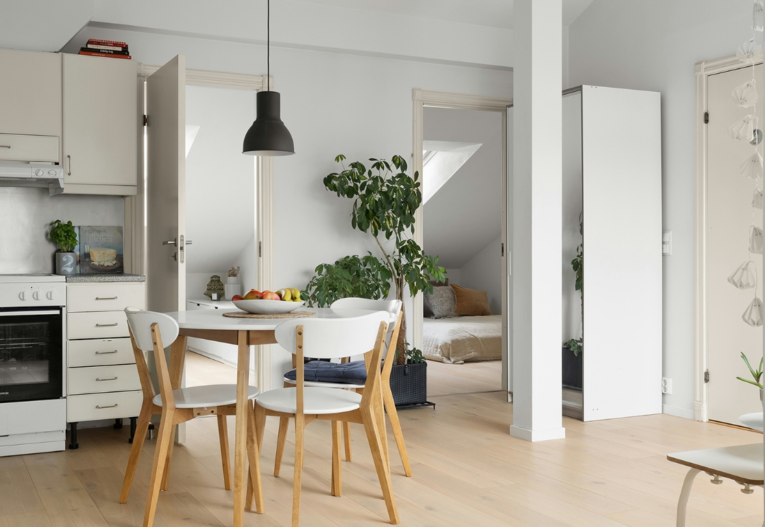 一人暮らしの部屋では、食事と作業を兼用できるテーブルも人気があります。